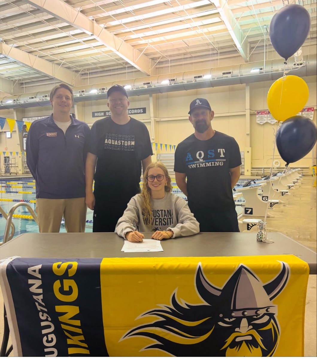 Aquastorm’s Abby Jablonsky signed her National Letter of Intent to take her swimming career to the D2 level next fall! Abby will be swimming and attending school at Augustana University in Sioux Falls, SD. Abby your Aquastorm Family is so proud of you!!